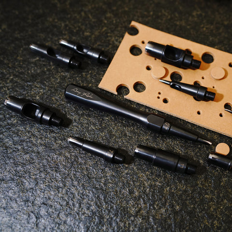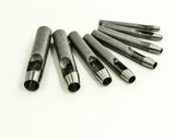 High quality, sturdy sharp steel drive punches. One piece tool automatically cleans punched leather out the side of the barrel so there's never any clogging.
